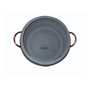 Panela de pressão em pedra sabão com longa durabilidade; Retém o calor por longo deixando o alimento quente por muito mais tempo.