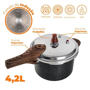 A Panela é indicada para todos fogões, de indução, à gás, elétrico e vitrocêramico, para você passar menos tempo cozinhando e ter mais segurança durante o preparo de seus alimentos.