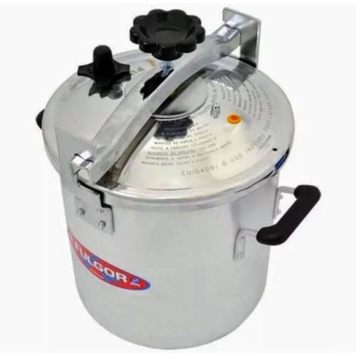 Panela de pressão industrial 25 litros - fulgorMarca: fulgorMaterial: alumínioMaterial das tampas: alumínioAlças: baqueliteEspessura: 4,5 mmCor: prata/alumínioImagens meramente ilustrativas. As tonalidades podem variar de acordo com seu monitor ou até mesmo com a percepção dos seus olhos