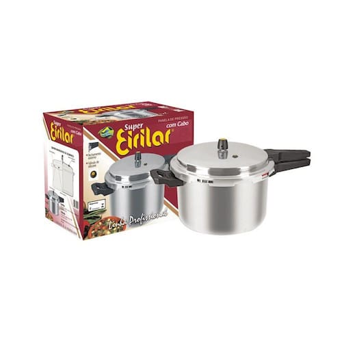 Panela de Pressão Industrial com Cabo 22 Litros - EirilarComposição: alumínio com polimento de alto brilho.Informações Adicional: Designe moderno e alta tecnologia, garantindo fácil manuseio, segurança e grande capacidade de produção.A pressão de trabalho é de 80 KPA, oferecendo maior rapidez no cozimento de alimentos e conseqüente economia de energia em comparação com outras existentes no mercado com pressões de trabalho inferiores. Vide gravação no fundo da panela.Conteúdo e dimensões: 1 panela pressão 22 litros (AxLxC) 34x39x63cm.Fornecedor: Eirilar.Foto: meramente ilustrativa.Observação: informações sujietas a alteração sem aviso prévio.Garantia (Fabricante): contra defeitos de fabricação.