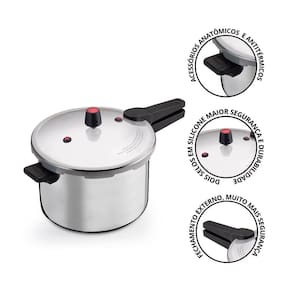 Panela Nacional 10 Litros com Fechamento Externo Panela Nacional 10 Litros com Fechamento Externo ============================================================ Pensando em facilitar seu dia a dia na cozinha, essa panela foi desenvolvida para ser sua aliada nesses momentos. Conta com um fechamento externo, praticidade no uso e, trazendo principalmente, segurança ao cozinhar. A panela é feita em material super resistente, auxilia para conservar os aromas e sabores dos alimentos, assim você pode desfrutar de suas deliciosas refeições, com o prazer que a panela proporciona. O material feito de alumínio é um excelente condutos de calor, os alimentos cozinham muito mais rápido, comparando com outros metais. ============================================================ Contém: 01 Unidade Especificação: - Material: Aço Polido e Baquelite - Medida: 40cm x 22cm - Peso: 2498 gramas - Capacidade: 10 Litros - Contém 02 Apitos na Parte Superior da Tampa - Cabo em Material Ultra Resistente - Fechamento Externo ATENÇÃO - Não funciona em fogão à indução - O fechamento externo foi desenvolvido pensando em sua segurança ao cozinhar. - O cabo e a aba são em baquelite, mais durável e resistente a altas temperaturas. - O material de aço polido permite que os alimentos sejam cozinhados com mais rapidez. ============================================================ Devido à diferença entre monitores e iluminação diferentes, pode haver variação na tonalidade apresentada no anúncio. Medidas muito aproximadas. Marca: Não Informado Ean: 6013400026499