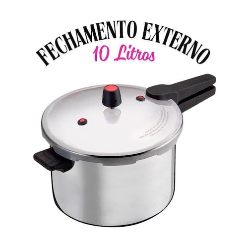 Panela Nacional 10 Litros com Fechamento Externo Panela Nacional 10 Litros com Fechamento Externo ============================================================ Pensando em facilitar seu dia a dia na cozinha, essa panela foi desenvolvida para ser sua aliada nesses momentos. Conta com um fechamento externo, praticidade no uso e, trazendo principalmente, segurança ao cozinhar. A panela é feita em material super resistente, auxilia para conservar os aromas e sabores dos alimentos, assim você pode desfrutar de suas deliciosas refeições, com o prazer que a panela proporciona. O material feito de alumínio é um excelente condutos de calor, os alimentos cozinham muito mais rápido, comparando com outros metais. ============================================================ Contém: 01 Unidade Especificação: - Material: Aço Polido e Baquelite - Medida: 40cm x 22cm - Peso: 2498 gramas - Capacidade: 10 Litros - Contém 02 Apitos na Parte Superior da Tampa - Cabo em Material Ultra Resistente - Fechamento Externo ATENÇÃO - Não funciona em fogão à indução - O fechamento externo foi desenvolvido pensando em sua segurança ao cozinhar. - O cabo e a aba são em baquelite, mais durável e resistente a altas temperaturas. - O material de aço polido permite que os alimentos sejam cozinhados com mais rapidez. ============================================================ Devido à diferença entre monitores e iluminação diferentes, pode haver variação na tonalidade apresentada no anúncio. Medidas muito aproximadas. Marca: Não Informado
