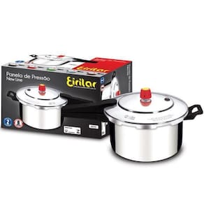 A Panela de Pressão New Line Eirilar garante essa e outras vantagens para você, fácil de manusear e oferece segurança total. Ela traz todas as vantagens do preparo por pressão, como a retenção das propriedades naturais de cada alimento e o cozimento rápido. Sua tecnologia acelera ainda mais o cozimento, poupando gás. Confeccionada em Alumínio, ela é muito resistente e durável. Muito segura, Tem alça de baquelite. A válvula removível facilita a limpeza. Design moderno e alta tecnologia garantindo fácil manuseio e beleza em sua cozinha. Acabamento da tampa com polimento de alto brilho. Sistema de 8 travas que garantem segurança absoluta para o produto. Desde que obedecidas as instruções de uso inseridas nas embalagens, esta Panela de Pressão é 100% segura. A pressão de trabalho é de 80 Kpa, oferecendo maior rapidez no cozimento de alimentos e consequente economia de energia em comparação com outras existentes no mercado com pressão de trabalho inferiores. Os Cabos e Alças são confeccionados em baquelite que resistem ao calor propagado pelas paredes das panelas ao serem levadas ao fogão. Borrachas de vedação e válvulas são de silicone que garante uma perfeita vedação mesmo quando submetidas a altas temperaturas em função do cozimento dos alimentos.
