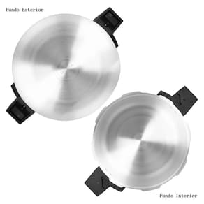 Seu design inclui tampa fácil de abrir, asas ergonômicas para fácil manuseio e marcas de medidas. Fabricada em alumínio resistente, ela é compatível com fogões a gás, vitrocerâmicos e elétricos (exceto indução), sendo livre de PFOA e outras substâncias tóxicas. Não usar no micro-ondas e freezer.