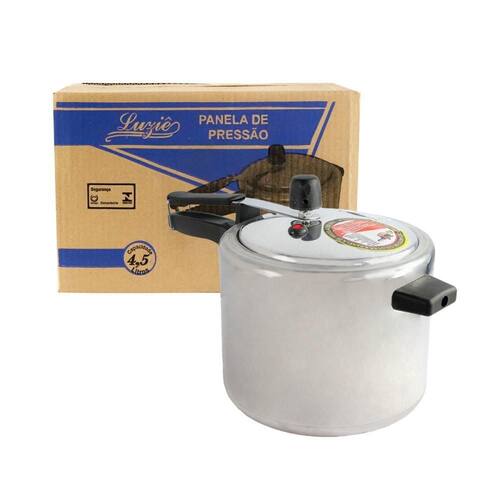 Panela de pressão roque 4,5 litros inox Perfeita para cozinhar suas receitas favoritas de forma eficiente, essa panela compacta será uma ótima aquisição para sua cozinhacom uma capacidade de 4,5 litros, é ideal para famílias pequenas e refeições individuais.Seu design simples em inox faz com que ela se adapte em qualquer cozinha além de não ocupar muito do espaço de armazenamento.Feita com materiais de alta qualidade, a panela garante um cozimento uniforme e seguro, além de economizar tempo e energia, mantendo o sabor e os nutrientes dos alimentos. cuidados:-nunca usar a panela de pressão sem água;-não utilizar no microondas;-untar com óleo nas partes revestidas com antiaderente;-não utilizar esponja de aço e/ou material pontiagudo ou de metal. -não possui marcação de volume de água. especificações:material: inoxdimensões: diâmetro da boca: 18cm x diâmetro total: 20cm x comprimento cabo ao outro: 36cm x alt.: 18cmpeso: aprox. 820g registro inmetro: 006365/2019 contém:01 panela de pressão inox 4,5 litros Marca: Roque Ean: 7898105280419