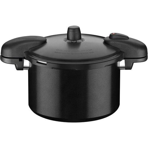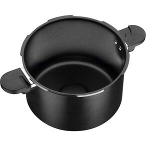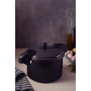 Com um revestimento cerâmico interno e externo, corpo em alumínio e um belo acabamento, a Panela de Pressão Valência Black da Tramontina possui uma espessura robusta de 3,8mm que proporciona um cozimento uniforme e rápido para qualquer alimento que ali for preparado.A panela ainda conta com um sistema indicador de pressão na alça lateral e 3 sistemas de segurança. Além de suas funcionalidades e a clássica qualidade da Tramontina, vale ressaltar o lindo design da peça com toques modernos e discretos que vão trazer muita elegância para a sua cozinha.Características:Marca: TramontinaLinha: Valência BlackCor: PretoMaterial: AlumínioMaterial da Alça/Pegador: Baquelite AntitérmicoAntiaderente: Sim (Revestimento Cerâmico)Espessura: 3,8mmCapacidade: 7LDiâmetro: 24cmFogões Compatíveis: A gás, elétrico e vitrocerâmicoMaterial da Tampa: Alumínio Anodizado