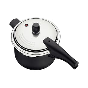 Dados Técnicos Diâmetro: 20,0 cm. Capacidade: 4,50 L. Panela de pressão em alumínio com corpo com revestimento interno e externo de antiaderente Starflon e tampa com acabamento interno satinado e externo polido, equipadas com alça e cabo. Tampa em alumínio com acabamento interno satinado e externo polido. Para maior segurança está equipada com válvulas de segurança. Proporciona um cozimento rápido e uniforme.