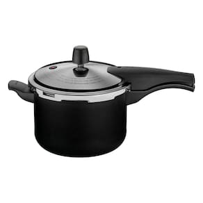 Com a panela de pressão Tramontina Vancouver Effect em alumínio com revestimento interno e externo em antiaderente Starflon Max preto 20 centímetros de diâmetro 4,5 litros você ganha um aliado de alta qualidade para o preparo das suas refeições. Com ela, suas receitas serão um sucesso absoluto e ficam prontas com maior rapidez. Com tampa de alumínio com acabamento externo polido e interno satinado, ela proporciona um encaixe perfeito e mantém a pressão ideal durante todo o preparo das refeições. Para garantir sua segurança, a panela conta com alças e cabos superiores e inferiores em baquelite antitérmico, oferecendo assim, maior conforto e estabilidade ao manuseá-la. Versátil, ela ainda pode ser utilizada em diferentes tipos de fogões, sejam eles a gás, elétricos ou vitrocerâmicos - resistência elétrica. Escolha as panelas de pressão Tramontina Vancouver e tenha um item que se adapta ao seu estilo de vida na cozinha e eleva suas habilidades culinárias!