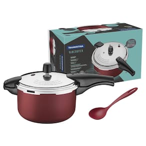 Seja para aquela receita especial ou rotineira, a Panela de Pressão Tramontina Vancouver em Alumínio com Revestimento Interno e Externo Antiaderente Starflon Max Vermelho 24 cm de diâmetro 6 L é a peça ideal para acompanhar você!