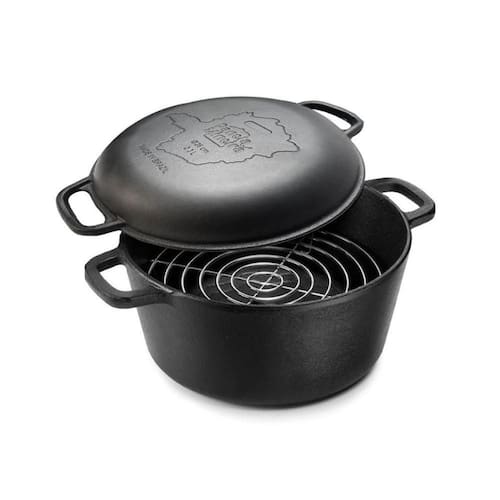 A Panela de Defumação da Panela Mineira é uma peça única. Apresenta um design aprimorado, com um fundo preto reto, bordas alongadas e tampa, que garantem uma cocção prolongada uniforme, com excelente de calor, a tornando ideal para o preparo de pães, bolos, carnes, arroz, bifes, frangos, peixes, vegetais e muito mais. Acompanha grelha, placa de defumação e tampa moderna. Pode ser utilizado como assadeira, caçarola e frigideira. A tampa é timbrada com a bandeira de Minas Gerais.