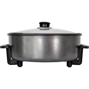 Informação adicional: ? 30 cm de diâmetro: ideal para preparo de pizzas, tortas e bolos ? Dupla camada antiaderente: maior durabilidade e facilidade de limpeza ? Tampa de vidro: visualize o preparo da sua receita sem a necessidade de abertura ? Cabo removível de 1m: maior segurança para higienização ? 3 litros de capacidade: ideal para o preparo de refeições para a família toda ? Fusível térmico: acionamento automático em caso de superaquecimento evitando danos ao produto ? Knob com controle de temperatura ? Ajuste a temperatura de acordo com a sua necessidade Ean: 7898461975691