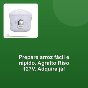 Panela Elétrica Agratto Riso 110V A Panela Elétrica Agratto PA10X Riso, a companheira perfeita para quem busca praticidade e sabor em suas refeições. Com a sua potente capacidade de 400W e a praticidade da tensão 110V, você prepara até 10 medidas de arroz de forma fácil e eficiente. Imaginar refeições completas e saudáveis nunca foi tão simples! A bandeja de vapor integrada possibilita a preparação de legumes simultaneamente, garantindo um menu nutritivo sem precisar de utensílios extras. A Panela PA10X Riso oferece a praticidade que você procura: acionamento por botão, tampa com visor de vidro para acompanhar o cozimento, função de manter aquecido para servir na temperatura ideal e uma cuba antiaderente que facilita a limpeza. E para maior segurança e praticidade, o cabo de força é removível.