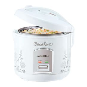 Panela elétrica bianca rice 10 pe-1010 xícaras 700w de potência Branca com detalhes florais Tampa basculante com válvula de saída de vapor Lâmpada-piloto Revestimento antiaderente Função cozinhar e aquecer Prepara arroz, legumes, risotos e muito mais. Potência 700w Consumo 0,7kw/h Material metal e pp Panela de arroz elétrica mondial pe-10 - 220v A panela elétrica bianca rice, da mondial é totalmente multifuncional. Possui 700 w de potência, tampa com válvula de saída de vapor e indicador de nível de água. Contém também revestimento antiaderente e as funções cozinhar e aquecer, além de preparar diversos pratos, como arroz, legumes e risotos muito mais praticidade na hora de cozinhar e servir seus alimentos, já que ela pode ser levada diretamente à mesa características: marca: mondial referência: 4210-01. Modelo: pe-10 material: polipropileno e metal. Potência: 700 w. Quantidade de xícaras: 10 xícaras. Prepara: arroz, rizotos e legumes. Temperatura: máxima 1 mantém os alimentos aquecidos: sim tampa com saída de vapor: sim possui grelha: não possui bandeja: sim indicador do nível de água: sim trava de segurança: não alças: sim pés: sim antiderrapantes. Luz indicadora: sim consumo aproximado de energia: 0,7 kw/h. Controle de temperatura: não timer: não pode ser utilizada na base itens inclusos: 1 panela elétrica dimensões: altura: 28 cm largura: 28,2 cm profundidade: 28,3 cm peso: 2,680 kg garantia do fornecedor; 12 meses