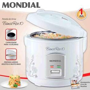 Mobilar eletro ha mais de 25 anos invoando em pordutos e atendimentoPanela arrozeira eletrica mondial pe10Grande, com capacidade para 10 xícaras de arroz, a panela elétrica de arroz bianca rice também cozinha outros pratos a vapor, sendo mais saudável. A cuba antiaderente não gruda e é mais fácil de limpar. Além de arroz, ela cozinha outros doces e salgadas, como risotos, sopas, carnes e legumes. Quer saber o que vem na panela de arroz Esta panela elétrica acompanha um cesto cozi-vapor para você cozinhar legumes e verduras no vapor, o que preserva suas vitaminas. Ela também vem com 1 colher especial, 1 copo medidor e 1 livro de receitas para você cozinhar o que quiser de a a z. Sua válvula de saída de vapor libera o excesso de vapor durante o preparo, proporcionando um melhor cozimento. Além disso, seu coletor de vapor recolhe a água acumulada durante o funcionamento, para você não se queimar. E seus 700w de potência ajudam você a cozinhar mais rápido. A panela elétrica de arroz bianca rice pe10 foi desenvolvida para uso doméstico. Capacidade para 10 xícarasFaz até 10 xícaras de arroz e vários tipos de alimentos doces e salgados como risoto, sopas, carnes e legumes Válvula de saída de vaporLibera o excesso de vapor durante o preparo, proporcionando um cozimento perfeito. Preparo saudávelAcompanha cesto cozi-vapor para cozinhar legumes e verduras no vapor, preservando as suas vitaminas. Praticidade e limpezaColetor de vapor para recolher a água condensada durante o funcionamento do produto. Cuba com revestimento antiaderente que facilita a limpeza. AcessóriosAcompanham colher, copo medidor e livro de receitas incluído no manual .Informações adicionaisLâmpadas-piloto que indicam o funcionamento luz vermelha e o aquecimento luzItens inclusos01 panela elétrica - manual de instruçõesTipo de panelaPanela elétrica de arrozMaterialPpCapacidade10 xícarasPotência700wRevestimento internoSimAção do produtoCozinhar, refogar e praparar alimentos de forma mais rápida.Luz indicadoraSimAcessório para cozimento a vaporSimColher e copo medidorSimAlimentaçãoEnergia elétricaGarantia1 anoDimensões do produto27cm x 28cm x 26,5cm axlxp Peso do produto2,560kgComprimento do cabo1,50mPanela eletrica mondial, arrozeira mondial, panela de arroz, panela de arroz 10 xicaras panela eletrica de arroz, panela de arroz eletrica