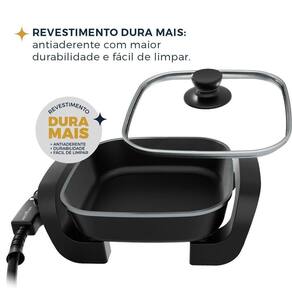 Seu revestimento antiaderente facilita a limpeza e garante que seus alimentos não grudem. Além disso, as alças com toque frio proporcionam durante o manuseio, evitando queimaduras. Desenvolvida com 5 níveis de temperatura ajustáveis, permitem que você escolha a temperatura ideal para cada tipo de alimento, ou seja, garante resultados perfeitos.