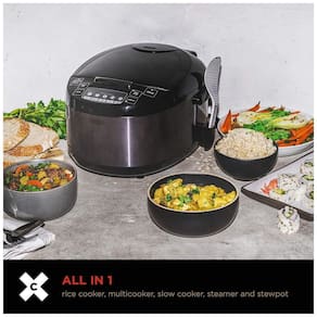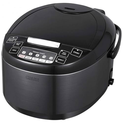 Sistema de aquecimento de 600 watts | Prepara até 2,8 kg de arroz cozido em 30 minutos | 10 funções de cozimento predefinidas | Tela LED de fácil leitura | Sinal sonoro | Mantém o arroz aquecido por até 12 horas | Panela removível com revestimento antiaderente | Tampa articulada | Acorde de energia destacávelLâmpada piloto