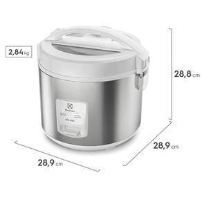 Panela de arroz elétrica Electrolux 3.5L com função 2 em 1, capacidade para 10 xícaras, função manter aquecido, recipiente interno antiaderente removível, tampa com trava de segurança e protetor térmico.Lâmpada piloto