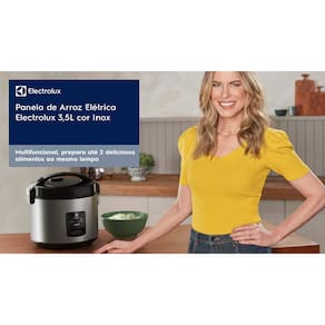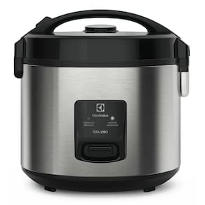Panela de arroz elétrica Electrolux com capacidade de 3 litros (10 xícaras), potência de 700W, função 2 em 1 (cozimento a vapor), função manter aquecido, coletor de vapor, desligamento automático, panela antiaderente removível, luz indicadora de funcionamento e design em aço inox.Lâmpada piloto