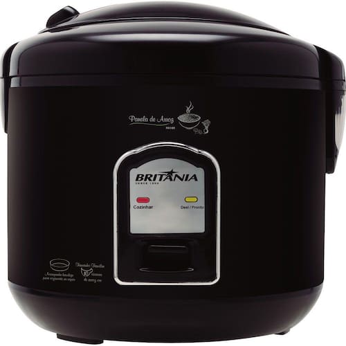 Panela Elétrica De Arroz BritÂnia PA5P Capacidade para 05 xicaras de arroz - 1.2L Tampa com alça Acompanha colher e copo medidor Tampa com vedação Botão de travamento Saida de vapor Coletor de água Luzes indicadoras de funcionamento Tigela com revestimento antiaderente Voltagem: 127V Cor: Branca Sistema de aquecimento automático: ManTém o alimento fresco e aquecido após o seu cozimento Tigela com revestimento antiaderente: Fácil de limpar Luzes indicadoras de funcionamento: Permite saber qual a função selecionada Acompanha espátula: Elaborada com material especial para não riscar o revestimento antiaderente da tigela Copo dosador: Medida ideal para preparar arroz Faz diversos tipos de arroz e risoto: Funções ideais para maior comodidade Altura: 237mm Largura: 228mm Profundidade: 215mm Peso: 1,42Kg