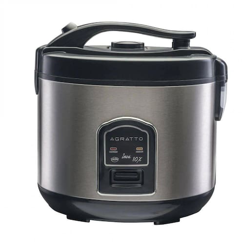Cozinhar nunca foi tão fácil Panela de Arroz e Legumes Elétrica Inox 10 Xícaras Agratto 220V - Rápida, prática e fácil de limpar, - Tamanho família (capacidade para 10 xícaras de arroz), - Sistema de aquecimento automático: Mantém o alimento fresco e aquecido após o cozimento, - Bandeja perfurada para cozinhar a vapor: Ideal para refogar legumes e verduras, - Alça superior e trava, que proporcionam maior segurança para manusear o aparelho, - Arroz soltinho no almoço em família, legumes cozidos para uma alimentação mais saudável, tudo isso de forma prática e rápida e fácil. -Aproveite melhor seu tempo enquanto ela cozinha por você- --------------------------------------------------------------------------------------------------------------------- Especificações gerais: - Altura: 25,5 cm - Capacidade: 12 litros - Voltagem: 220V - Potência: 700 W - Peso: 2,32 kg - Comprimento do Cabo: 110 cm - Display eletrônico - Isolamento Térmico - Indicador de preparo finalizado - Termostato - Silencioso --------------------------------------------------------------------------------------------------------------------- Conteúdo da caixa: 1x panela elétrica agratto pai10x 1x manual de instruções 1x copo dosador 1x colher --------------------------------------------------------------------------------------------------------------------- Recomendações de uso, manutenção e limpeza: Antes de qualquer utilização limpe o aparelho com um pano suave para remover as partículas de poeira que possam estar no mesmo, desconecte o plugue da tomada e aguarde até que a panela esteja totalmente resfriada sempre limpe a cuba antiaderente após o uso com uma esponja macia com água e detergente neutro seque todas as partes com papel toalha e guarde o produto. 1 Ano de garantia de fábrica
