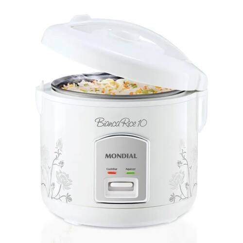 Com a Panela de Arroz Bianca Rice 10 Mondial você prepara seu almoço de forma mais prática. Possui capacidade para preparar até 10 xícaras de arroz e acompanha cesto que cozinha alimentos no vapor, preservando todos os nutrientes. Possui cuba removível com revestimento antiaderente e função aquecer, que deixa suas receitas sempre quentinhas. Acompanha colher e copo medidor.