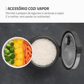 Acessório Cozi Vapor: Acompanha um cesto que permite cozinhar deliciosos legumes e verduras no vapor, preservando todos os seus nutrientes.