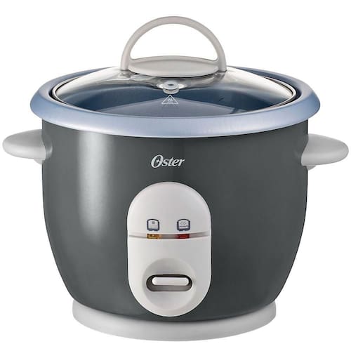 Panela elétrica de arroz Oster Facile com capacidade para 3 copos, função manter aquecido, recipiente removível antiaderente e cozimento a vapor. Acompanha copo medidor e colher.Lâmpada piloto