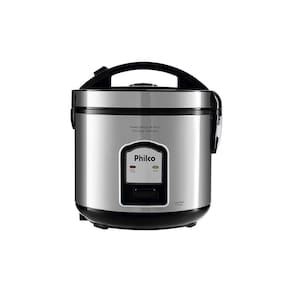 Panela Elétrica de Arroz Philco Ph5p Visor Glass Inox / Preto 127v, Tampa com visor em vidro para acompanhar o preparo do alimento, Potência: 400W, Capacidade: 5 Xícaras, LED Indicador de Funcionamento: Sim, Panela Antiaderente: Sim, Funcionamento: Elétrico, Coletor de água: SimLâmpada piloto