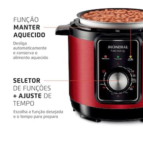 - 10 Funções que proporcionam maior praticidade - Capacidade para 3L - Tampa com alça ergonômica, térmica, prática e segura, com trava de segurança - Acabamento em aço inox - Preparo inteligente e rápido - Prática e rápida - Válvula de segurança, mantendo a pressão equilibrada - Cuba removível que facilita a limpeza - Ajuste de tempo: ideal para todos os tipos de receitasLâmpada piloto