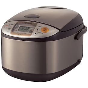 Tecnologia de lógica fuzzy micro computadorizada. Capacidade até 10 xícaras 1,8 litros Ciclo de aquecimento e aquecimento automático prolongado Classificação elétrica 120 volts. Dimensões L x P x A 28 x 38 x 25 centímetros Exterior de aço inoxidável transparente com revestimento fácil de limpar, 2 ajustes de tempo de retardo, marrom inoxidável. Melodia e sinal sonoro intercambiáveis Cabo de alimentação retrátil integrado Feito na china NOTA Por favor, consulte o manual do usuário disponível abaixo para obter assistência NOTA Certifique se de medir o arroz no copo que vem junto com o produto SOMENTE. A capacidade é medida em aprox. 6 onças , Copo medidor de 180mL de arroz, usando arroz branco de grão curto cru. Outros grãos podem variar