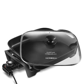 A Panela Elétrica Quad Multi Cook PE-49 é quadrada e multifuncional. Com controle de temperatura até 190° C, sua grelha lisa de 30 CM tem capacidade de 4L e é antiaderente: não gruda, dispensa óleo e tem 1250W de potência. Use para aquecer, assar, tostar, gratinar, grelhar e preparar arroz, almôndegas, risotos, legumes, grelhados, assados, sejam peixes, legumes, verduras ou carnes, tudo com muita rapidez. Com revestimento antiaderente, você grelha sem manteiga ou óleo, deixando os alimentos mais saudáveis e sem perder o sabor. Suas alças antitérmicas protegem as suas mãos. Sua tampa de vidro temperado evita respingos, fazendo o alimento ficar pronto mais rápido, além de permitir acompanhar o preparo das suas receitas. Ela tem uma válvula de saída de vapor para você não se queimar. A Panela Elétrica Quad Multi Cook PE-49 foi desenvolvida para uso doméstico, sendo melhor para uso residencial. Tudo isso com 1 ano de garantia Mondial. A Mondial é a escolha de milhões de consumidores.
