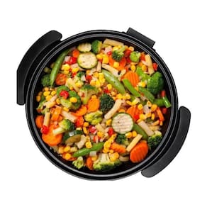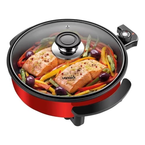 Panela elétrica multifuncional Lenoxx com 1250W, capacidade de 2,5L, controle de temperatura ajustável, revestimento antiaderente, tampa de vidro e pés antiderrapantes. Ideal para cozinhar, refogar, fritar, grelhar e manter aquecido.Lâmpada piloto