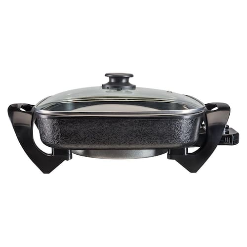 • Cuba antiaderente - não precisa de gordura e óleos para preparar a comida, facilita na hora da limpeza. • Capacidade de 4,6 Litros • Pode ser levada diretamente à mesa • 5 Níveis de temperatura - Fácil de controlar o preparo das suas receitas • Tampa de vidro temperado - É possível ver a comida sendo preparada. • Alças isotérmicas - Mais segurança na hora de servir.