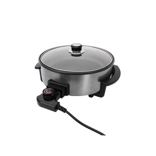Panela Elétrica Multifuncional Agratto 30cm, ideal para cozinhar, assar, fritar, aquecer, gratinar e tostar. Possui dupla camada antiaderente, controle de temperatura, tampa de vidro temperado e cabo removível.Lâmpada piloto