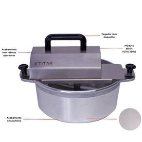 - Material: Panela de alumínio fundido e usinado, motor protegido em inox para durabilidade e higiene, com pegador em baquelite