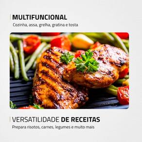 MULTIFUNCIONAL: O Grill cozinha, assa, grelha, frita, aquece, gratina e tosta.
