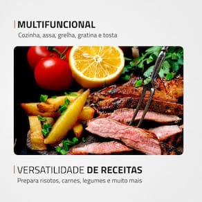 MULTIFUNCIONAL: O Grill cozinha, assa, grelha, frita, aquece, gratina e tosta.