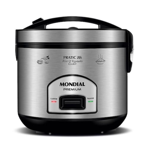 Panela Elétrica Mondial Pratic 10I PE-42-10 Xícaras 110v A panela elétrica da Mondial além de ser prática, possui maior profundidade para preparar alimentos em grande quantidade e servir toda a família. Com ela o arroz fica soltinho e saboroso em poucos minutos. A solução para as suas refeições saborosas e completas