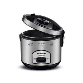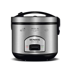 Panela de Arroz Elétrica Mondial Pratic PE-42-10X Com capacidade para 10 xícaras de arroz, a panela elétrica de arroz Pratic PE-42-10X da Mondial é super versátil, pois também cozinha outros alimentos no vapor, sendo mais saudável. A cuba antiaderente não gruda e é mais fácil de limpar. Aliás, vale lembrar que ela é fabricada em polipropileno e inox, material resistente e durável. Quer saber o que mais vem com a panela de arroz Esta panela elétrica acompanha cesto Cozi-Vapor para você cozinhar legumes e verduras no vapor, o que preserva suas vitaminas. Ela também vem com uma colher especial, copo medidor e livro de receitas para você cozinhar o que quiser de A a Z. Sua válvula de saída de vapor libera o excesso de vapor durante o preparo, proporcionando um melhor cozimento. Além disso, seu coletor de vapor recolhe a água acumulada durante o funcionamento, para você não se queimar. E seus 700W de potência ajudam você a cozinhar mais rápido. A panela elétrica de arroz Pratic PE-42-10X foi desenvolvida para uso doméstico. Características: Marca: Mondial Modelo: PE-42-10X Cor: Inox Válvula de saída de Vapor Revestimensto Antiaderente Tampa Basculante com Travamento Coletor de Vapor Itens Inclusos: 1 Panela Elétrica 1 Colher 1 Copo Medidor 1 Acessório Cozi Vapor 1 Manual de Instruções com receitas Ean: 7898578152503