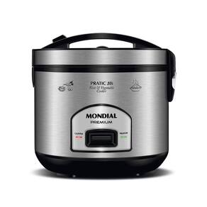 Panela de Arroz Elétrica Mondial Pratic PE-42-10X Com capacidade para 10 xícaras de arroz, a panela elétrica de arroz Pratic PE-42-10X da Mondial é super versátil, pois também cozinha outros alimentos no vapor, sendo mais saudável. A cuba antiaderente não gruda e é mais fácil de limpar. Aliás, vale lembrar que ela é fabricada em polipropileno e inox, material resistente e durável. Quer saber o que mais vem com a panela de arroz Esta panela elétrica acompanha cesto Cozi-Vapor para você cozinhar legumes e verduras no vapor, o que preserva suas vitaminas. Ela também vem com uma colher especial, copo medidor e livro de receitas para você cozinhar o que quiser de A a Z. Sua válvula de saída de vapor libera o excesso de vapor durante o preparo, proporcionando um melhor cozimento. Além disso, seu coletor de vapor recolhe a água acumulada durante o funcionamento, para você não se queimar. E seus 700W de potência ajudam você a cozinhar mais rápido. A panela elétrica de arroz Pratic PE-42-10X foi desenvolvida para uso doméstico. Características: Marca: Mondial Modelo: PE-42-10X Cor: Inox Válvula de saída de Vapor Revestimensto Antiaderente Tampa Basculante com Travamento Coletor de Vapor Itens Inclusos: 1 Panela Elétrica 1 Colher 1 Copo Medidor 1 Acessório Cozi Vapor 1 Manual de Instruções com receitas Ean: 7898578152503
