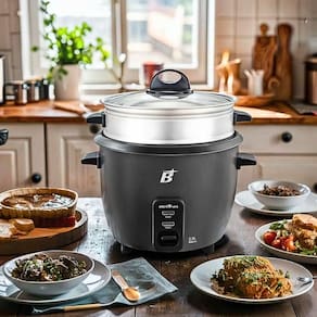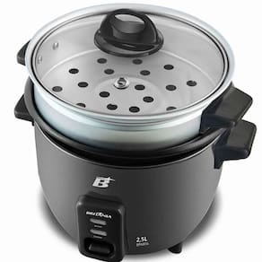 Cozinha até 7 xícaras de arroz, 500W de potência, tampa com válvula de saída de vapor, revestimento antiaderente, função manter aquecido, copo medidor e colher dosadora inclusos, luz indicadora de funcionamento, base antiderrapante, coletor de vapor removível.Lâmpada piloto
