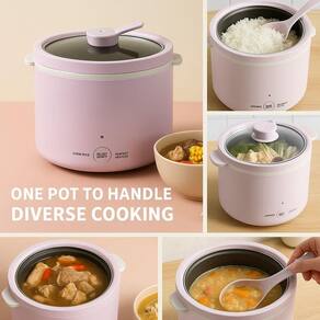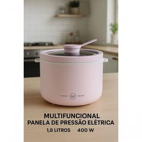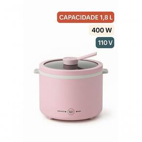 Panela elétrica ideal para arroz, sopas, hotpot e muito mais. Compacta, prática, acabamento rosa pastel. 110V, 400W.