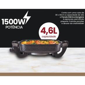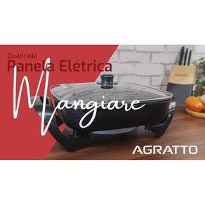 Panela Elétrica Mangiare 30cm 220V 1500W Quadrada Agratto A Panela Elétrica Mangiare Agratto é a grande aliada para quem busca uma alimentação saudável. A panela conta com revestimento antiaderente em sua Cuba, proporcionando assim alimentos saborosos sem adição de óleo. Multifunções, praticidade e elegância. Prepare refeições para família toda. Desing moderno e capacidade de 4,6 litros. Com a Panela Elétrica Mangiare Agratto você pode cozinhar, assar, fritar, aquecer, gratinar e tostar seus alimentos. Use sua criatividade para criar receitas e explorar essas funções. Informações técnicas Marca: Agratto Modelo: APEQ01I PRETO Cor: Preta Voltagem: 220V Frequência: 60 Hz Potência: 1500 W Tipo de produto: Panela Elétrica Multifuncional quadrada Funções: Cozinhar, assar, fritar, aquecer, gratinar e tostar Sistema de cozedura: A vapor Capacidade de canecas: 15 Capacidade em volume: 4.6 L Material da cuba: Antiaderente Material da tampa: Vidro Temperado Quantidade de níveis de temperatura: 5 Com Desligamento automático: Não Com Função manter aquecido: Não Válvula de respiro para saída de vapor: Sim Cabo de energia removível: Sim Acessórios incluídos: Alças isotérmicas, tampa de vidro temperado, resistência removível Tomada: 3 pinos 10A Homologado: Inmetro Peso e medidas (aproximados) Medidas do produto: 19 x 31 x 43 cm (altura x largura x profundidade) Medidas do cabo de alimentação: 0,80 m Medidas de embalagem: 15 x 31 x 44 cm (altura x largura x comprimento) Peso: 2,24 Kg Itens inclusos: 1 Panela Elétrica Grill, 1 Tampa de Vidro, 1 Seletor de Temperatura, 1 Manual (português) Garantia do vendedor: 30 dias
