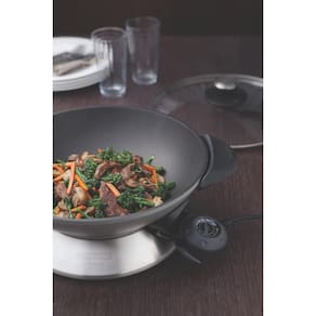 Sistema de aquecimento potente que distribui rapidamente o calor pelas laterais da wok, mantendo a temperatura alta para refogar os alimentos. Tampa de vidro temperado com válvula ajustável para saída de vapor. Revestimento antiaderente premium sem PFOA. Base desmontável de aço inox. Controle preciso de temperatura com 15 posições, alcançando 218°C. Ideal para refogar, cozinhar a vapor e fritar.Lâmpada piloto