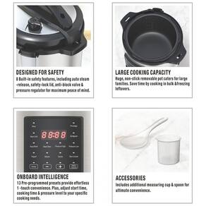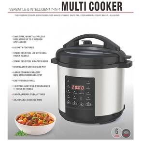 Desfrute da praticidade de um eletrodome´stico de cozinha tudo-em-um com a Versa´til e Inteligente Panela Multiuso 7 em 1. Projetada para substituir va´rios eletrodome´sticos, esta panela pode cozinhar sob pressa~o, cozinhar lentamente, vaporizar, refogar e ate´ fazer iogurte, tudo em uma u´nica unidade compacta e eficiente. Com sua grande capacidade de 6 litros, e´ perfeita para fami´lias ou preparo de refeic¸o~es, ajudando voce^ a criar refeic¸o~es deliciosas e sauda´veis com pouco esforc¸o. Seja cozinhando arroz, ensopados ou ate´ mesmo assando sobremesas, esta panela multiuso elimina as complicac¸o~es da cozinha. Equipada com 13 func¸o~es de cozimento preprogramadas e inteligentes, este eletrodome´stico oferece uma experie^ncia de cozimento perfeita para todos os ni´veis de habilidade culina´ria. O painel de controle fa´cil de ler permite que voce^ escolha entre va´rios programas pre´-definidos, enquanto o tempo de cozimento ajusta´vel e o timer de atraso oferecem flexibilidade na preparac¸a~o das refeic¸o~es. Construi´da com um corpo de ac¸o inoxida´vel durável e uma panela antiaderente, a panela multiuso na~o e´ apenas funcional, mas tambe´m fa´cil de limpar. A seguranc¸a e´ uma prioridade com a Panela Multiuso 7 em 1. Com 8 mecanismos de seguranc¸a embutidos, como protec¸a~o contra superaquecimento, uma tampa com trava de seguranc¸a e liberac¸a~o automa´tica de pressa~o, voce^ pode cozinhar com confianc¸a sabendo que sua cozinha esta´ protegida. A classificac¸a~o de energia eficiente de 1000W tambe´m garante um cozimento mais ra´pido, reduzindo o tempo gasto na cozinha em ate´ 70%. Com esta panela multiuso versa´til, fazer refeic¸o~es nutritivas e saborosas nunca foi ta~o fa´cil.
