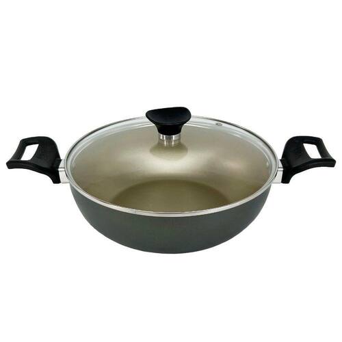 - Panela Frigideira Caçarola Tampa de Vidro WOK Antiaderente Alumínio