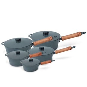 Panela Fundida Alumínio Batido 5 Peças Cabo de Madeira Tampa Fundida Grafite