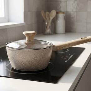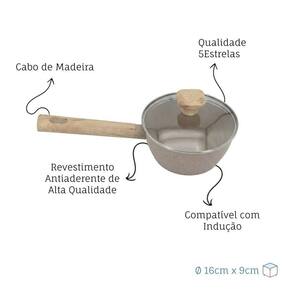 Panela de 16cm com revestimento antiaderente para indução e cabo de madeira, linha Marble