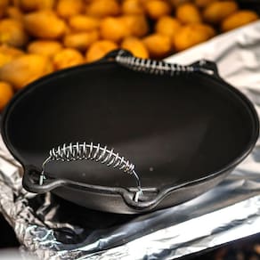 A Panela Wok Alça Espiral da Panela Mineira possui um design autêntico, com o interior abaulado e bordas arredondadas que evitam que o alimento transborde da panela. Ideal para preparar peixes, carnes, feijoadas, frutos do mar, legumes e outros pratos, de maneira prática e eficiente. Sua excelente distribuição e retenção de calor, característico do ferro fundido, mantém os alimentos aquecidos por muito mais tempo, além de enaltecer seus sabores e aromas.