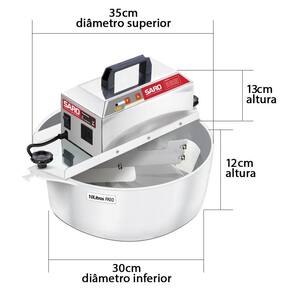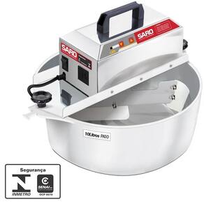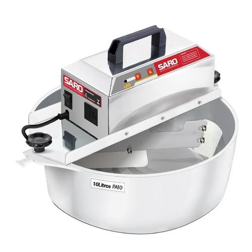 Panela misturadeira doces e salgados 10 litros: compre a , não aceite imitações a saro é líder na comercialização de panelas para doces e massas, além de possuir a maior e melhor estrutura para lhe atender. Produto certificado pelo inmetro: este equipamento é certificado pelo inmetro, garantia de qualidade extrema e segurança ao usuário. Nunca compre produtos elétricos sem certificação do inmetro, isso é ilegal e também é um risco para a sua segurança. Regulador de velocidade digital: este equipamento é o único que possui regulador de velocidade digital, um botão para subir e outro para diminuir a velocidade, dessa forma, você pode regular a velocidade com muita precisão e praticidade. Características: - única com regulador de velocidade digital integrado. - possui carenagem slim 50% mais leve do que a concorrencia. - fabricada 100% de inox próprio para o contato com o alimento. - possui espátulas de silicone resistentes á altas temperaturas. - possui motor de alta tecnologia com placa integrada. - sistema tecnológico red-plus, capaz de aumentar a vida útil do motor e diminuir sua manutenção. Prepare salgados: esta panela possui o motor mais potente da categoria, é a única capaz de preparar massas em geral, além de doces. Prepare churros, coxinha, risóles, croquete, quibe, emapada, pastel, pizza, pão e muito mais. Especificações: - capacidade mínima doces : 1 caixa de leite condensado. - capacidade máxima doces : 20 caixa de leite condensado. - capacidade máxima massas : 5kg de massa pronta. - potência do motor: 130w - peso total: 9,4 kg. - voltagem: bivolt